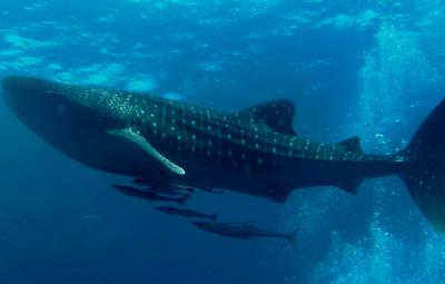 Su nombre científico es Rhincodon Typus y es el pez más grande del mundo , llegando a medir hasta 12 metros de largo, recubierto con una piel de hasta 15 centímetros de grosor. A pesar de su tamaño, es inofensivo para el humano; por ello resulta atractivo para los turistas contratar embarcaciones para verlos de cerca.