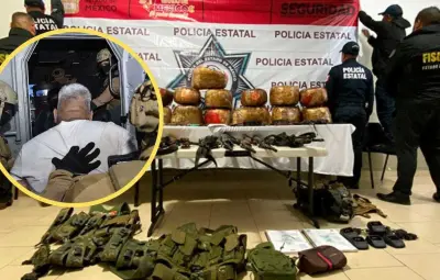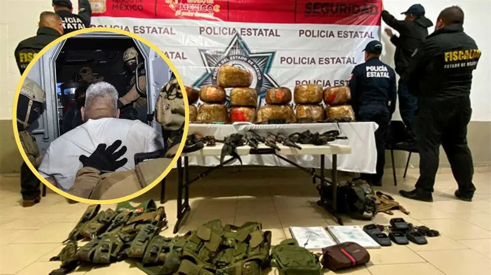 Operativo conjunto entre la SSEM, FGJEM y SEDENA culmina en la captura de líderes delictivos y la incautación de armas y drogas en Amanalco de Becerra.