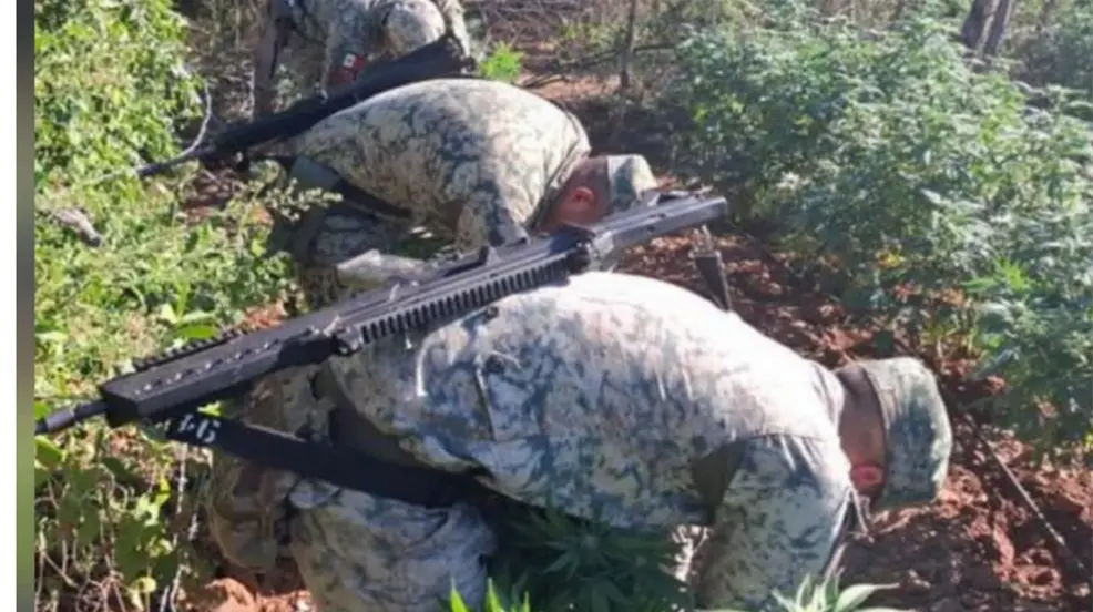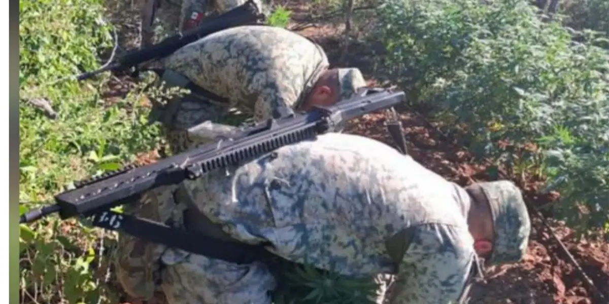Elementos del Ejército Mexicano, en coordinación con la Guardia Nacional, la Secretaría de Marina y autoridades federales y estatales, localizaron dos plantíos de marihuana en Culiacán , con apoyo de la Policía Estatal Preventiva.