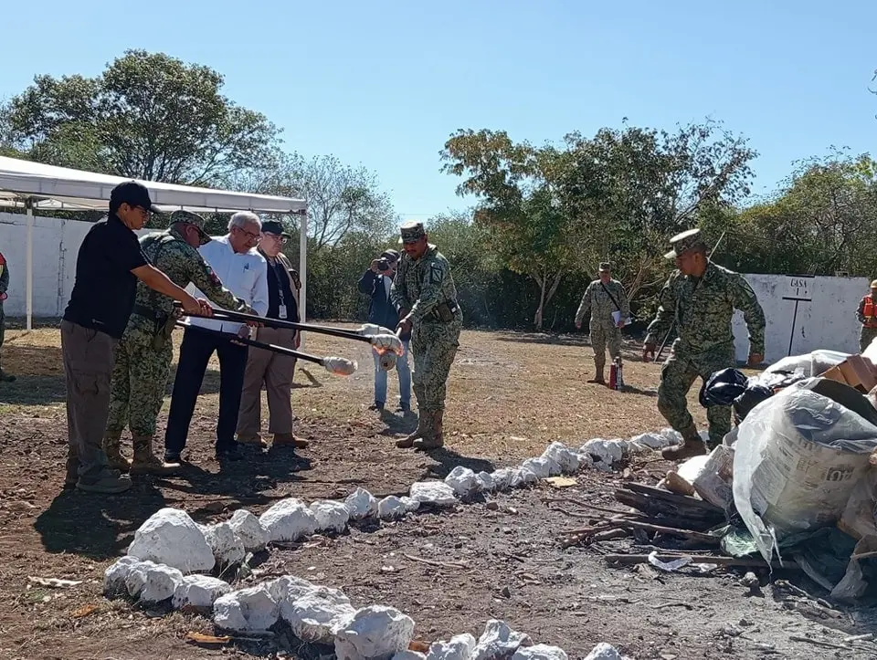 MÉRIDA, Yucatán.- En un acto conjunto entre el Ejército Mexicano, la Fiscalía General de la República (FGR) y la Fiscalía General del Estado (FGE), se llevó a cabo la destrucción de sustancias ilícitas en un evento de incineración de narcóticos.