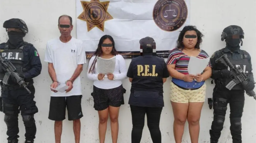 En un comunicado, la Secretaría de Seguridad Pública del Estado (SSP) detalló que las personas detenidas responden a los nombres de Zacarías GG alias “El Skiny”, Brenda Estefanía CU, y Mariana Guadalupe UM.