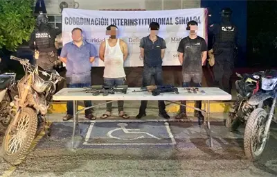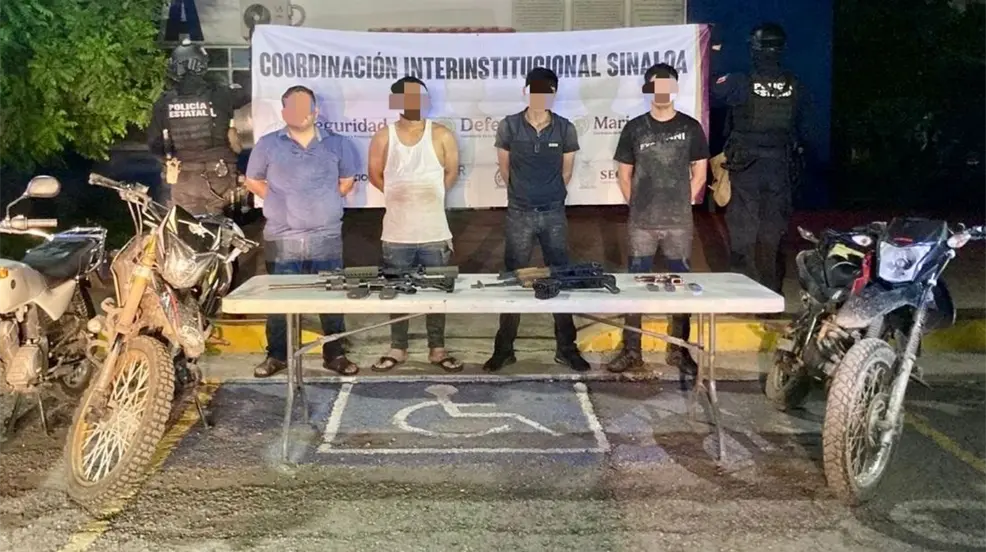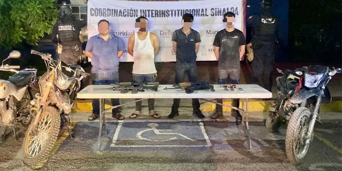 Tras una fuerte persecución en la sindicatura de Villa de Juárez, municipio de Navolato, los uniformados lograron interceptar y detener a cuatro sospechosos, quienes se desplazaban en tres motocicletas.