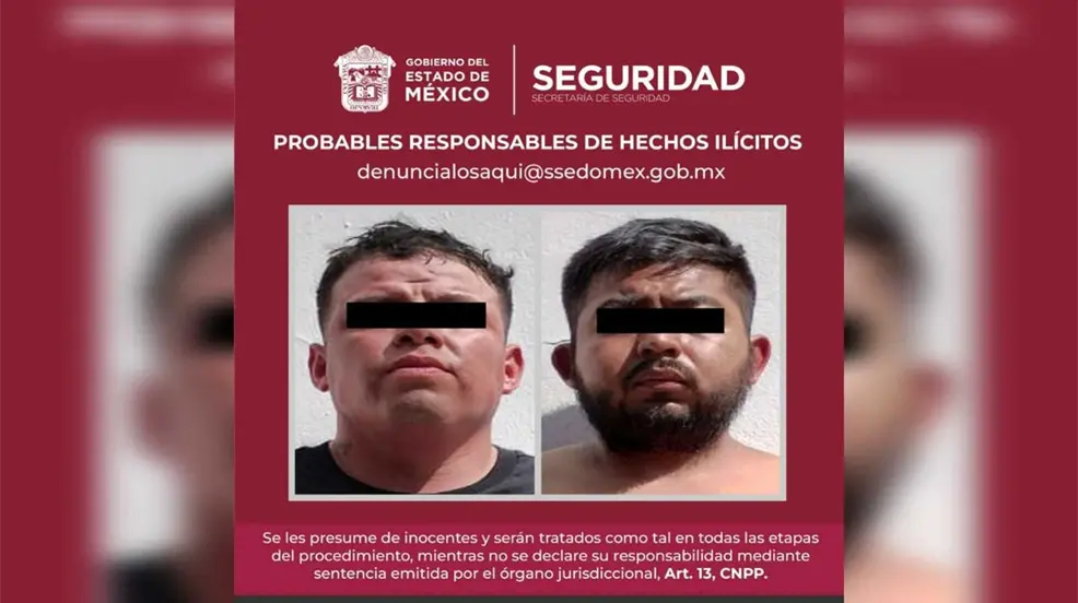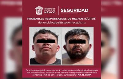 Elementos de la Secretaría de Seguridad del Estado de México lograron capturar a Martín N e Israel N de 27 y 29 años respectivamente, son acusados también por ataque peligroso e intento de robo con violencia a un transeúnte.