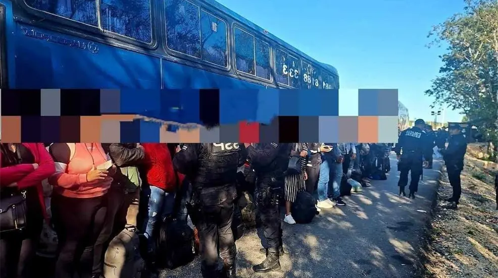 Detienen a más de 150 migrantes en dos autobuses en la autopista Mérida-Cancún