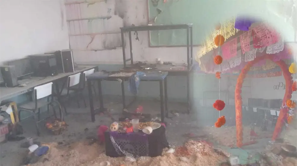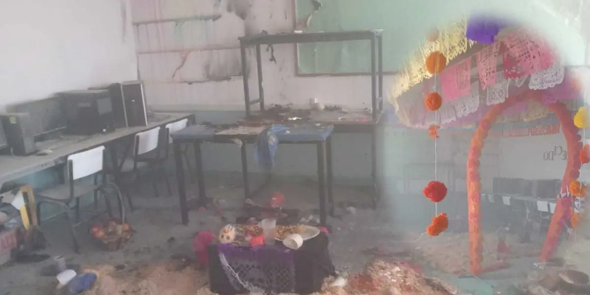 Día de Muertos: Se incendia altar de una primaria de Durango