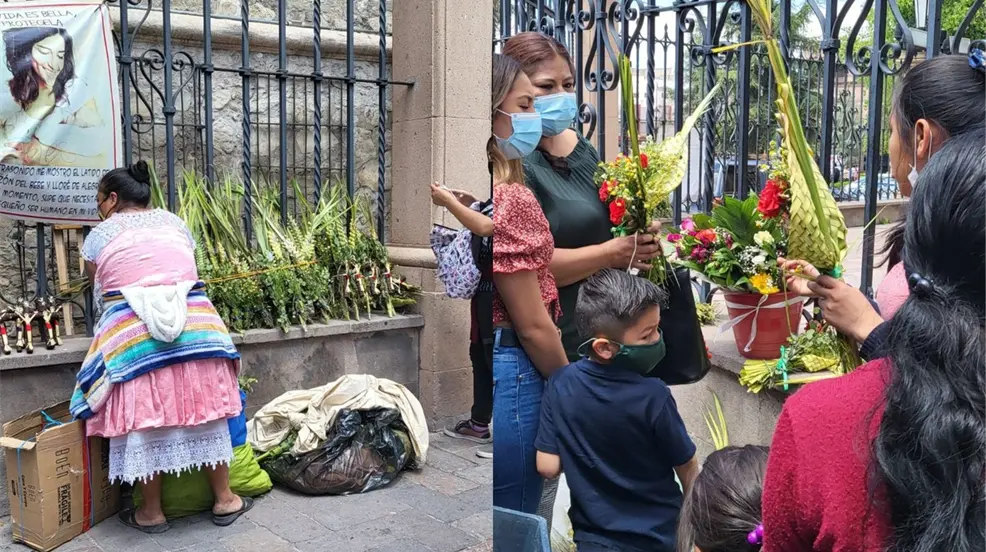 Asimismo, es común que al exterior de los templos se comercialicen ramos elaborados artesanalmente con palmas y algunas otras decoraciones como listones.
