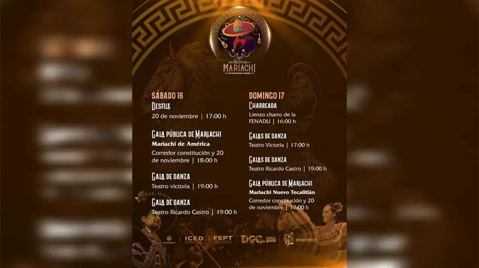 La Secretaría de Turismo de Durango, anunció que el Festival del Mariachi se celebrará este 16 y 17 de septiembre en territorio duranguense.