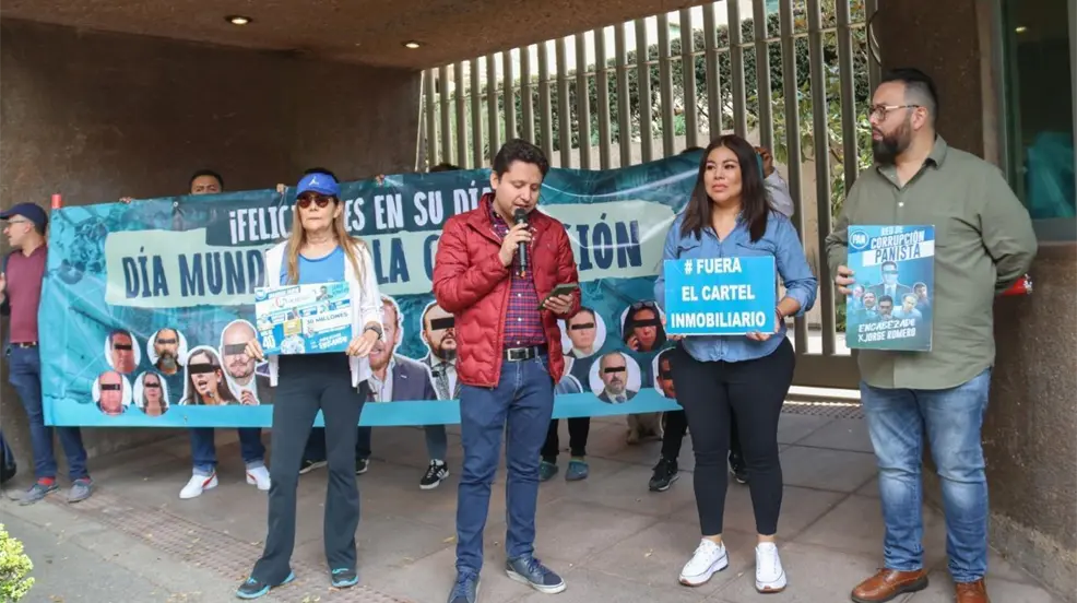 CIUDAD DE MÉXICO.- En el marco del Día Internacional contra la Corrupción, el Comité Ejecutivo Estatal de Morena, Ciudad de México y vecinos afectados por el Cartel Inmobiliario se manifestaron frente a la sede nacional del PAN, exigiendo a la dirigencia de ese partido detener las acciones corruptas de sus militantes.