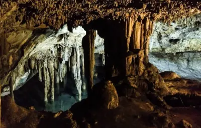 Descubierto en 1980, el cenote Paraíso Papakal es de tipo caverna con enormes estalagmitas que se sumergen en el agua. La gruta tiene una altura de 8 m, 40 de ancho y 40 de largo.