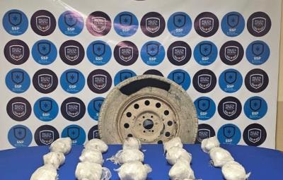 La Secretaría de Seguridad Pública logró ubicar al vehículo que contenía la droga, el cual fue asegurado. En él se localizaron 20 paquetes con plástico con cristal, con un peso de 21 kilogramos.
