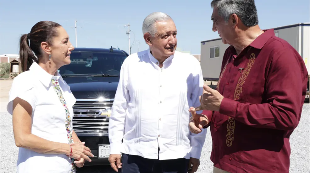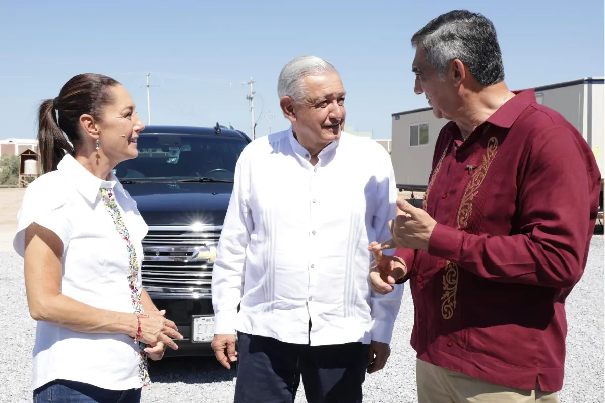 López Obrador y Sheinbaum llegaron la noche del viernes a Nuevo Laredo y este sábado recibieron información sobre el avance de esta magna obra de parte del secretario de la Defensa Nacional, Luis Cresencio Sandoval y el director general de Aduanas, André Georges Foullon Van Lissum.