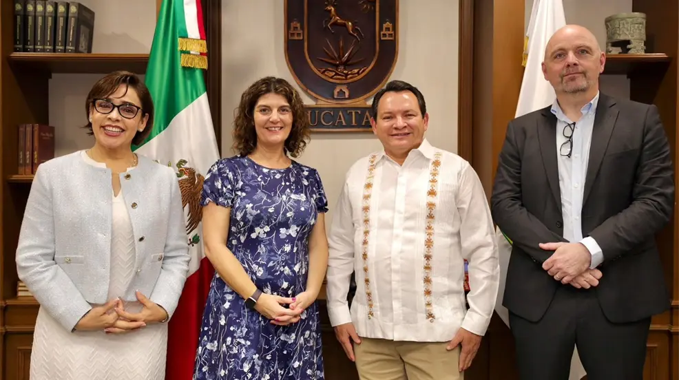 MÉRIDA, Yucatán.- El Gobernador de Yucatán, Joaquín Huacho Díaz Mena, recibió a una delegación de Reino Unido encabezada por la Encargada de Negocios de la Embajada en México, Rachel Brazier, para hablar sobre las oportunidades de inversión extranjera en el estado.