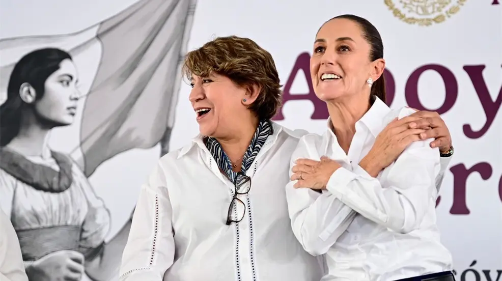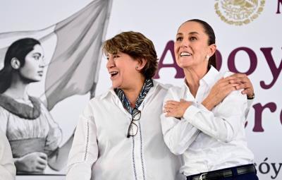 La presidenta de México y la gobernadora Delfina Gómez Álvarez trabajan en conjunto para la entrega de tarjetas. Imagen: GEM