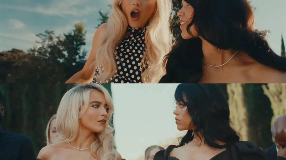 El video inicia con una advertencia de imágenes violentas y gráficas, y presenta a Sabrina interpretando una canción de cuna a varias armas antes de tomar un cuchillo y dirigirse a una mansión en busca de una confrontación. En esta tensa escena, Jenna Ortega aparece como su adversaria en una batalla dramática por el amor de un hombre.