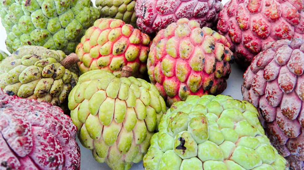 Es un fruto redondo que mide aproximadamente de seis a diez centímetros, cubierto de escamas verdes muy parecido a la chirimoya