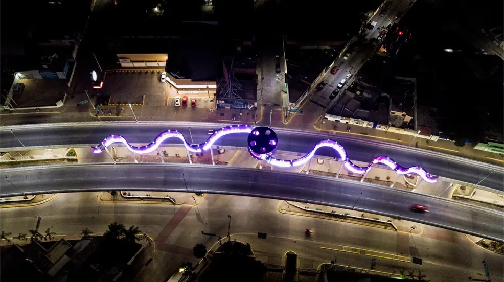 Estamos hablando de los Puentes Gemelos, ubicado sobre el bulevar Armando del Castillo Franco y en cuya altura se puede observar un enorme carrete con los carteles de algunas películas que han sido grabadas en Durango.
