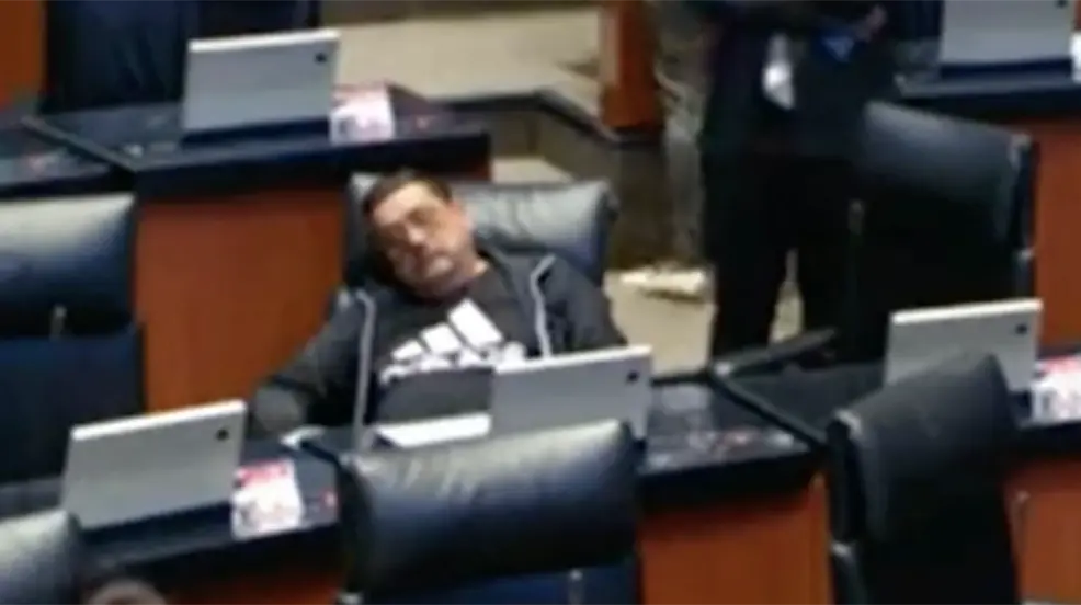 Y es que en las imágenes, se observa cómo el apodado “Toro” está inclinado hacia atrás en su silla, con la cabeza caída a un costado y los ojos cerrados, por lo que pareciera estar durmiendo en plena sesión.