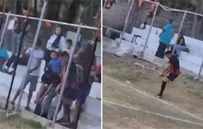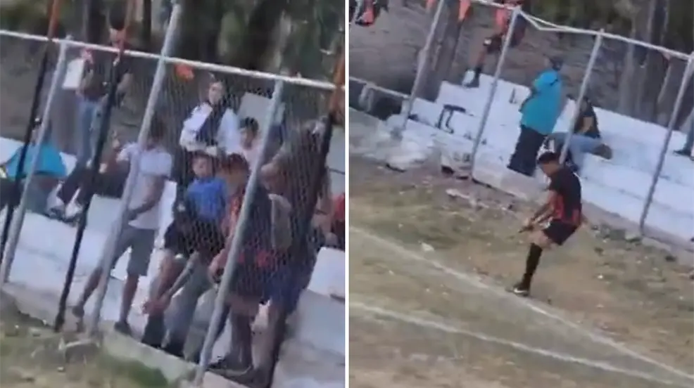 Pese al fallo del arma, la violencia continuó dentro y fuera de la cancha, con jugadores y aficionados involucrados en la riña.