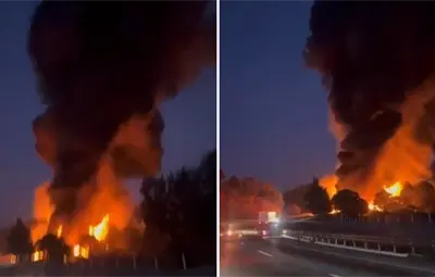 De acuerdo con reportes preliminares, la unidad se habría quedado sin frenos, provocando un choque y posterior explosión que generó una columna de fuego visible a varios kilómetros.