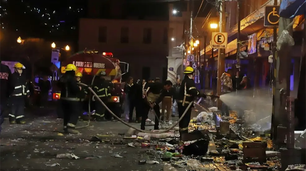 De acuerdo con testigos, un hombre arrojó un cigarro a uno de los locales lo que provocó el incendio y explosión de la pirotecnia.