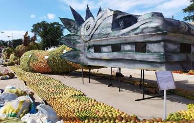 La sorprendete figura de Kukulcán mide 90 metros y fueron empleadas más de 5 mil frutas en su elaboración