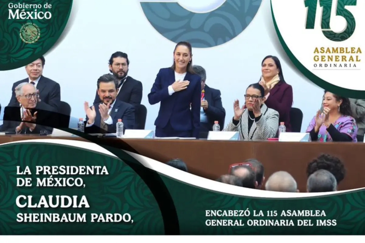 CIUDAD DE MÉXICO. – Durante la Asamblea General Ordinaria 115 del Instituto Mexicano del Seguro Social, IMSS, la presidenta Claudia Sheinbaum planteo una serie de metas que llevarán al fortalecimiento de este instituto.