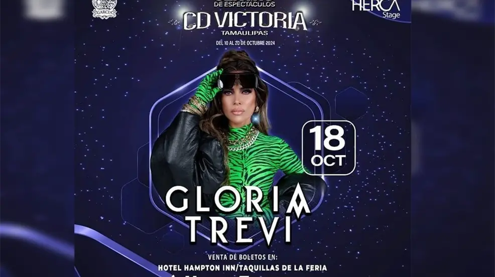 CIUDAD VICTORIA, Tamaulipas.- Este jueves se ha dado a conocer que Gloria Trevi es otra de las artistas que se estará presentando en el Centro de Espectáculos de Victoria en el mes de octubre.