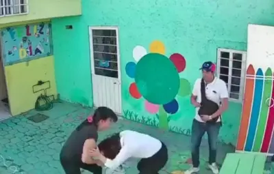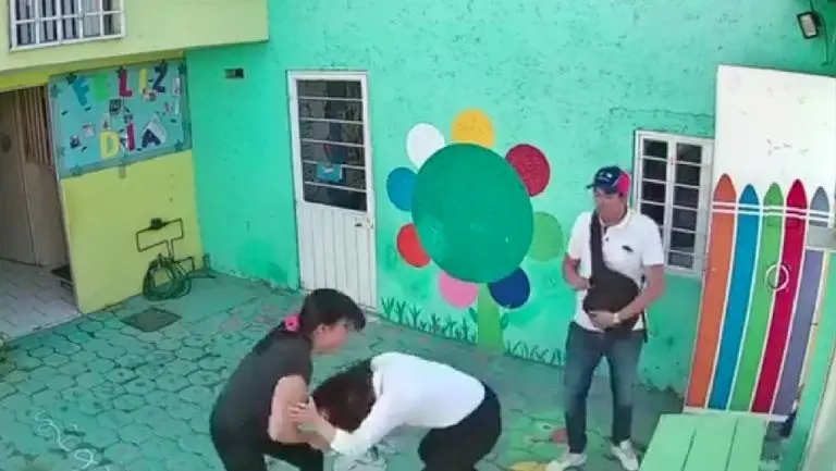 En un video de dos minutos con 58 segundos, que circula en redes sociales, se aprecia cuando la pareja llega al plantel, al abrirle la puerta la maestra, entra el padre primero y la madre, en seguida, empieza a golpear a la docente, le da una cachetada y la profesora grita 'ayuda', mientras la mujer la insulta, el jala el cabello y la jala por el patio, en tanto, el niño la apunta con el dedo y le dice 'era mala'.