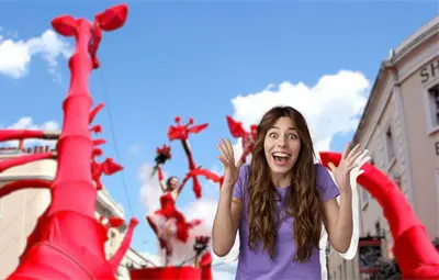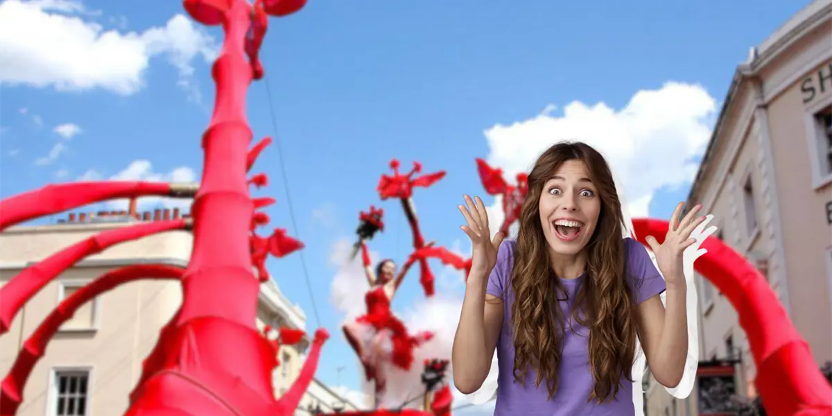 Este es un show interactivo de poco más de 50 minutos de recorrido escénico en el que podrás disfrutar de jirafas rojas gigantes articuladas, música en vivo, personajes teatrales, interacción directa con el público y una coreografía itinerante que avanza por las calles
