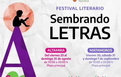 ALTAMIRA, Tamaulipas.- El Instituto Tamaulipeco de la Cultura y las Artes invita al Festival Sembrando Letras del 23 al 25 de agosto.