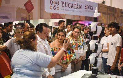El mandatario yucateco y su esposa recorrieron la feria para confirmar la respuesta de la gente que visita el lugar y participa en las actividades