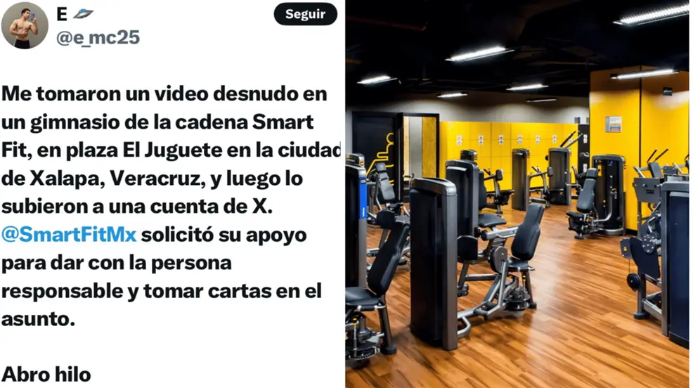 “Me tomaron un video desnudo en un gimnasio de la cadena Smart Fit, ubicado en Plaza El Juguete, en la ciudad de Xalapa, Veracruz, y luego lo subieron a una cuenta de X”, señaló y pidió a Smart Fit, su apoyo para dar con la persona responsable y tomar cartas en el asunto.