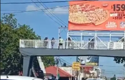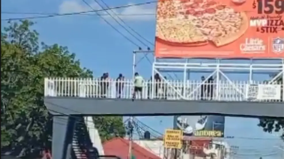 Un joven se lanzó desde lo alto de un puente peatonal en la avenida Gregorio Méndez Magaña, a la altura de la colonia Atasta en el municipio de Villahermosa, en Tabasco.