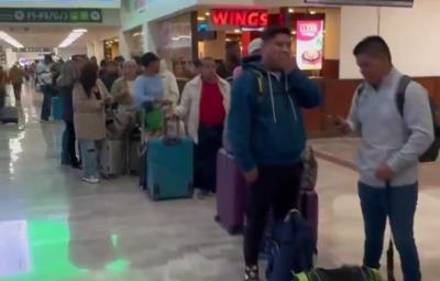 Debido a esta situación, se han formado largas filas de personas esperando conocer el estatus de sus vuelos.