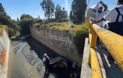 METEPEC, Estado de México.- En una exitosa jornada de limpieza del río El Arenal en San Bartolomé Tlaltelulco, Metepec, Voluntarios de la Comisión del Agua del Estado de México (CAEM) lograron retirar dos toneladas de basura y más de 50 llantas que contaminaban el cauce.