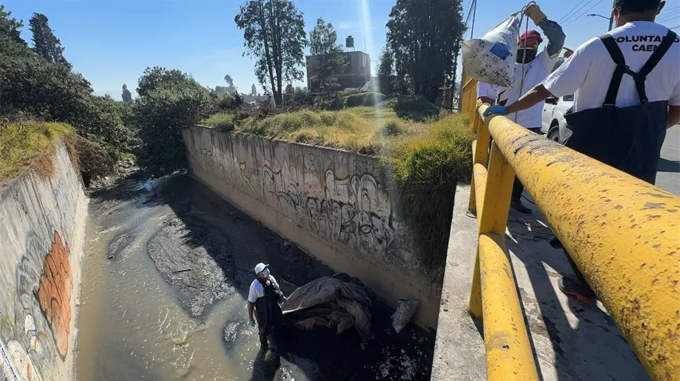 Voluntarios del CAEM lograron retirar dos toneladas de basura y más de 50 llantas en Jornada de Limpieza del río El Arenal en Metepec.
