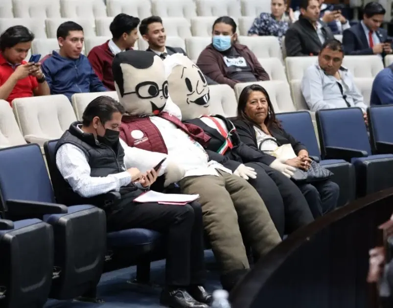 HIDALGO, México.- Durante una sesión del Congreso del Estado de Hidalgo, los asesores de un diputado decidieron llevar como invitados a dos muñecos de tela de tamaño gigante del presidente Andrés Manuel López Obrador y el Secretario de Relaciones Exteriores, Marcelo Ebrard.