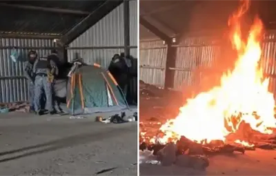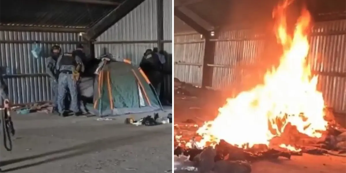 Durante la inspección de una bodega de estructura metálica, los agentes localizaron diversos indicios que confirmaron el uso del lugar como punto de descanso y resguardo de un grupo delincuencial, entre ellos: