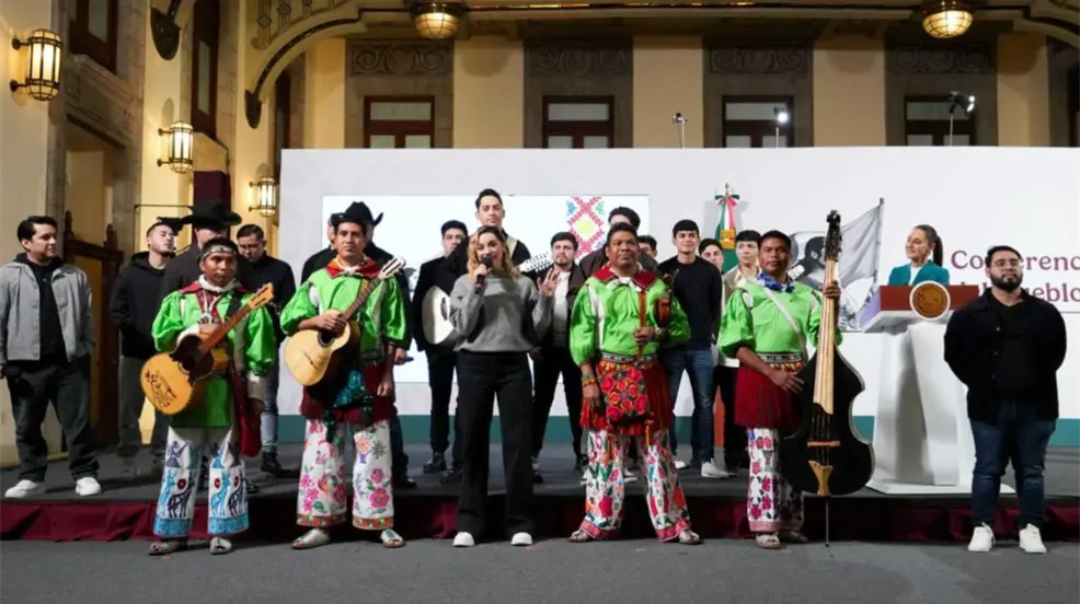 El grupo musical Los HH, sorprendieron con un regalo durante la conferencia mañanera a la presidenta Claudia Sheinbaum.