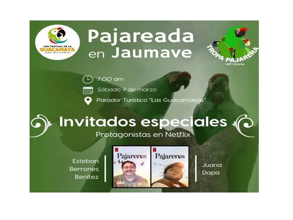 El 9 de marzo se llevará a cabo la “pajareada” en la que los asistentes podrán disfrutar del avistamiento de las guacamayas; en esta actividad participarán los protagonistas de “Pajareros” de Netflix.