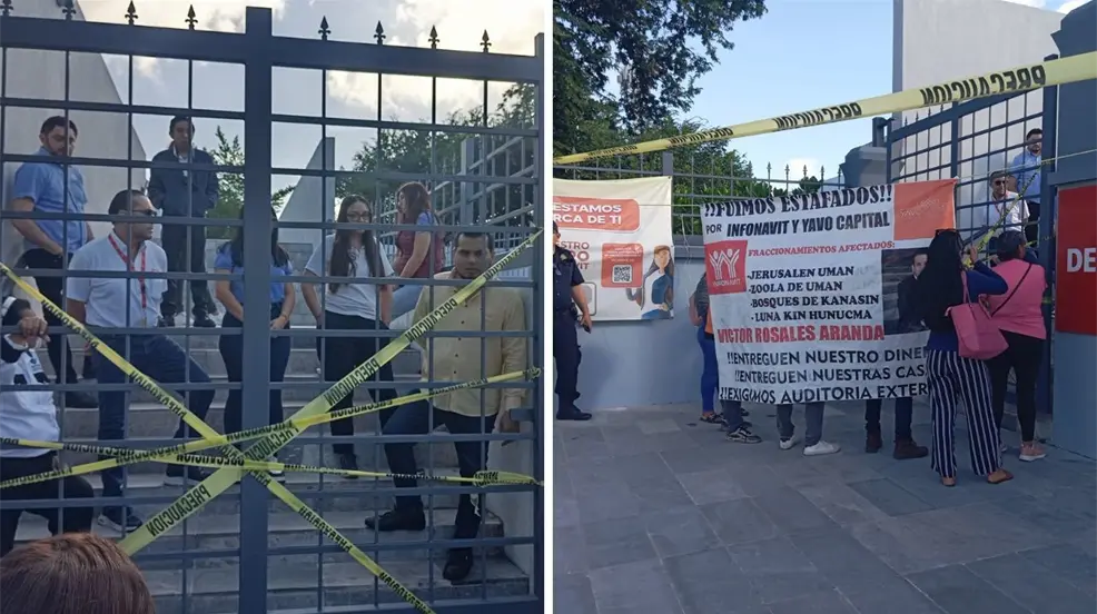 Vecinos de Kanasín y Umán hacen una manifestación frente al Infonavit por incumplimientos de sus patrimonios