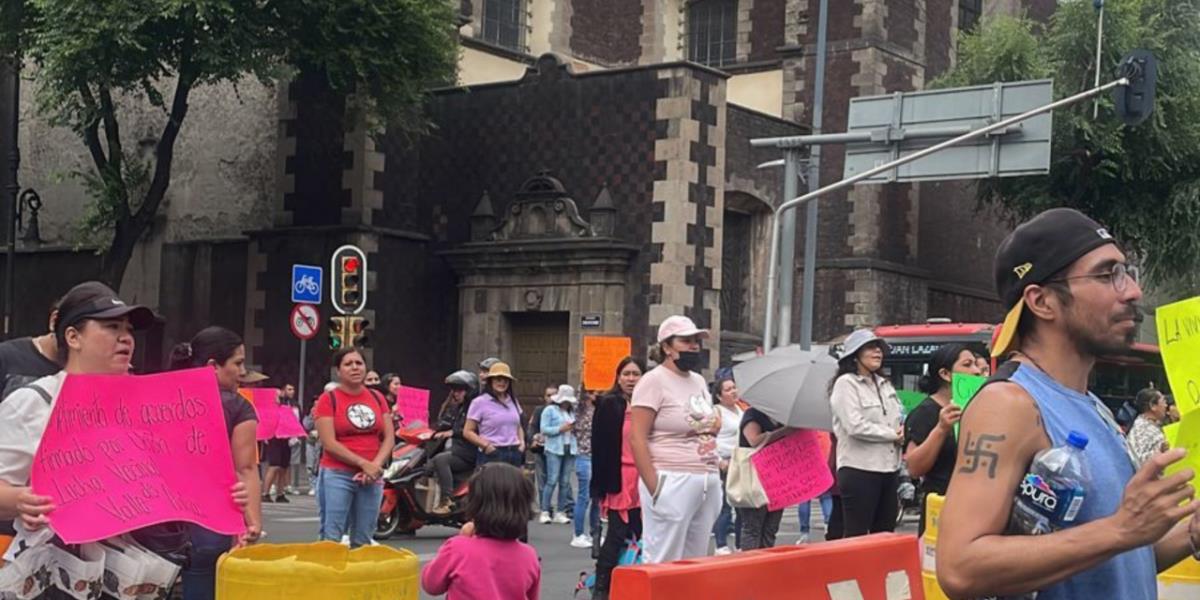 CUAUHTÉMOC, Ciudad de México.- Un grupo de manifestantes perteneciente a la Unión de Lucha Vecinal Valle de Anáhuac, se manifestó realizando el cierre del cruce vial de 20 de noviembre e Izazaga en la colonia Centro de la alcaldía Cuauhtémoc.