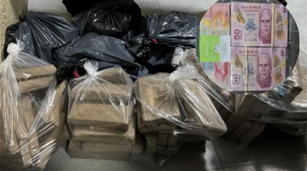 También se aseguraron un arma de fuego larga, una corta, tres teléfonos celulares, una báscula gramera, una máquina contadora de dinero y dos bolsas con fajos de billetes de diferentes denominaciones.