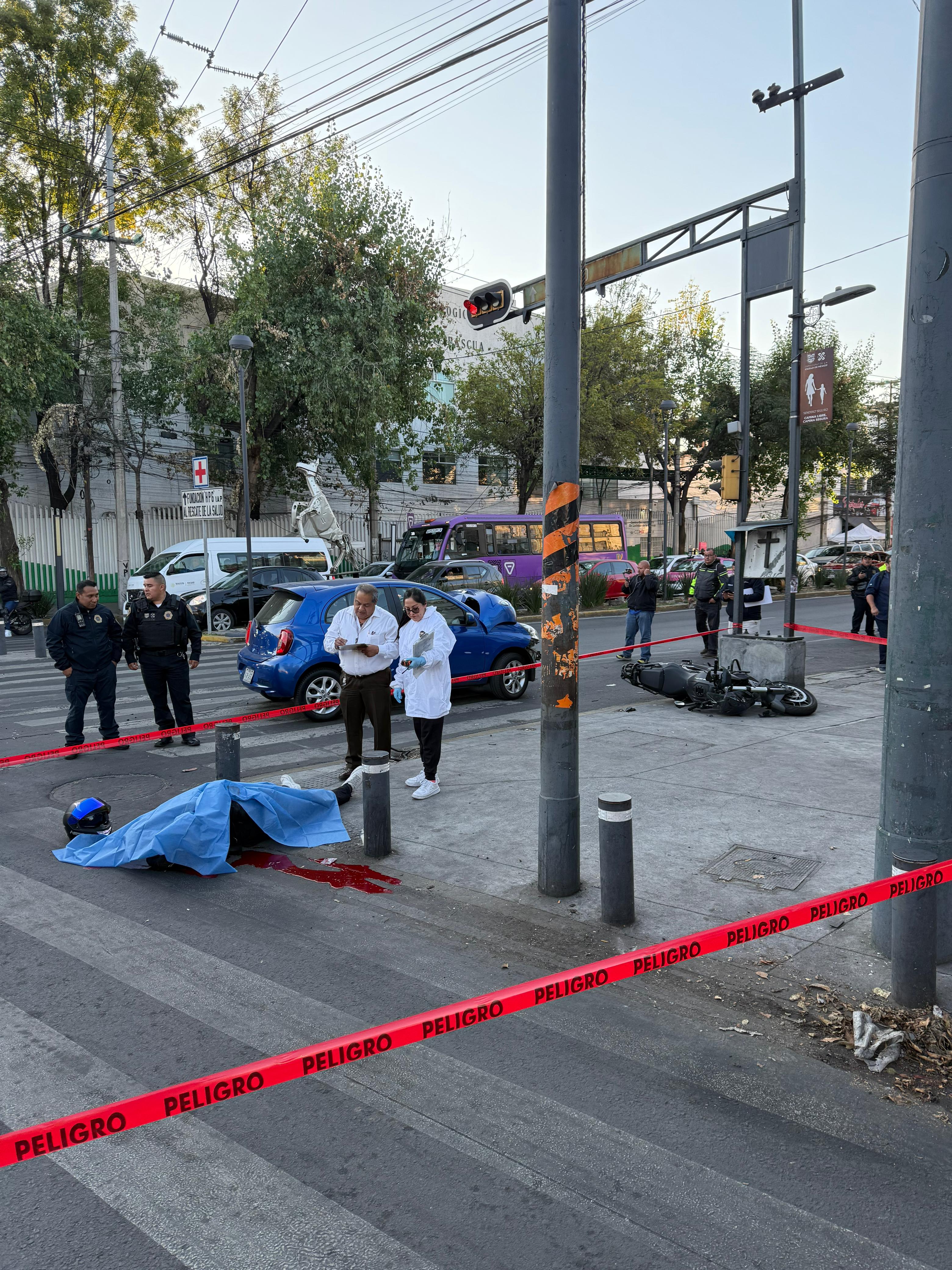Sucedió en el cruce de Dr. José María Vertiz y el Eje 3 Sur, en su tramo Dr. Morones Prieto, donde el motociclista que presuntamente circulaba en el carril confinado del transporte público murió tras ser golpeado por un auto compacto en color azul.