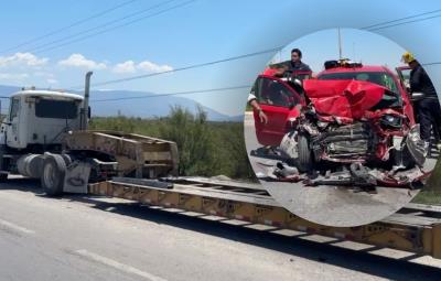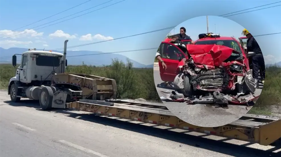 MONCLOVA, Coahuila. - Una colisión grave tuvo lugar este miércoles en el Libramiento Carlos Salinas de Gortari, en el municipio de Monclova, cuando un automóvil Chevrolet chocó contra la plataforma de un vehículo de carga pesada. El accidente dejó a una mujer gravemente herida, atrapada entre los restos de su vehículo debido a la gravedad del impacto.