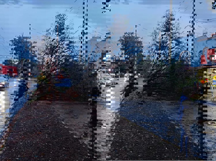 A raíz de los fuertes vientos que se están presentando en la entidad, un árbol de varios metros de altura terminó siendo derribado.