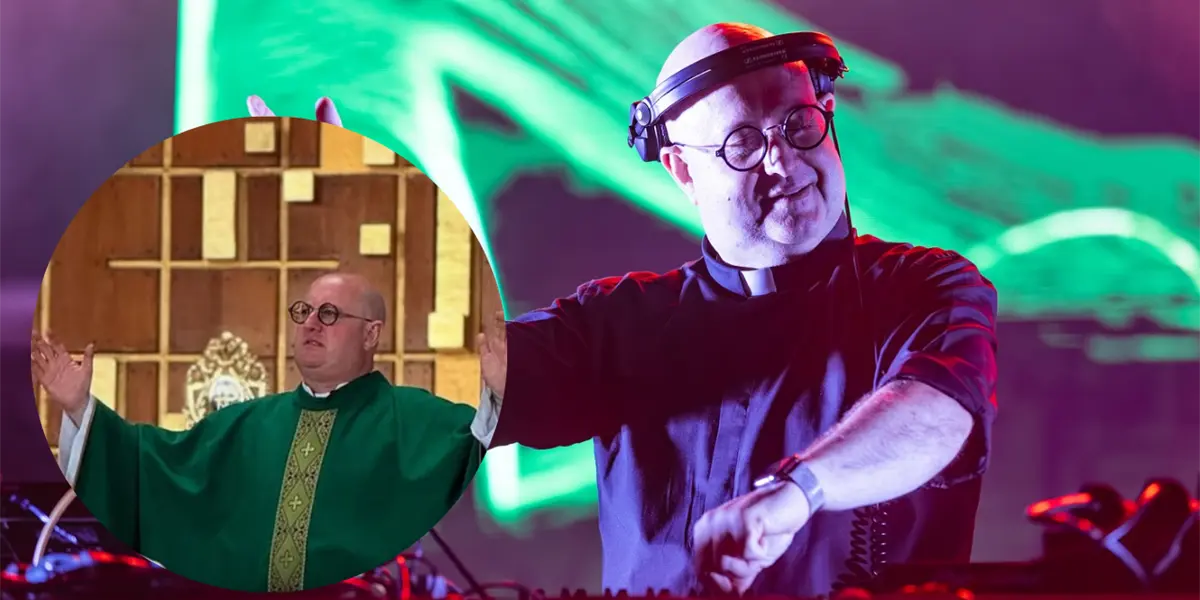 Padre Ghuilherme da misa en Puebla y por la noche toca como DJ en Dreamfields 2025