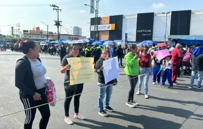 Con cartulinas en mano, las mamás y los papás bloquearon la calle Arquitecto Carlos Lazo a la altura de la Cda. Rufina, en la colonia Tacubaya, justo afuera del Metro Tacubaya.