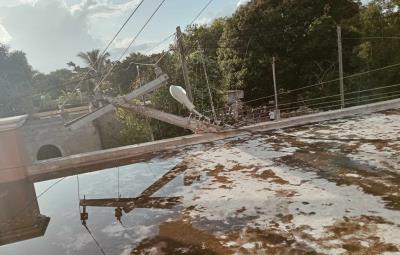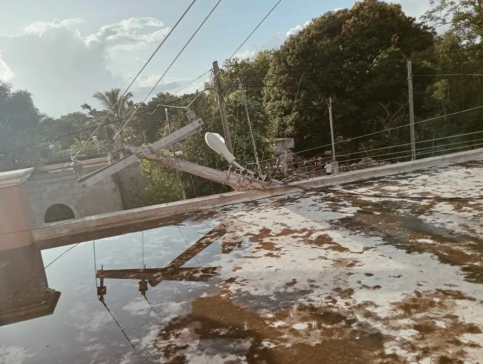 Peligro en una calle de Molas, Yucatán: poste de luz cae sobre vivienda