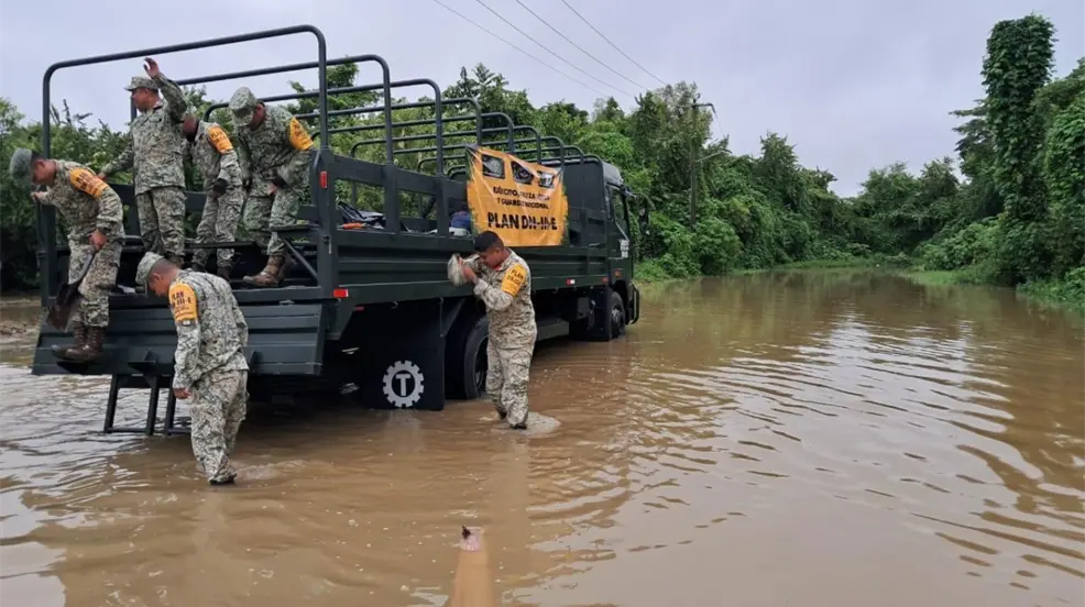 Con motivo de las afectaciones provocadas por la “Temporada de Lluvias y Ciclones Tropicales 2025”, se informó que el personal del Ejército, de la Fuerza Aérea y de la Guardia Nacional aplican el Plan DN-III-E en su fase de auxilio en los estados de Guerrero, Oaxaca, Querétaro, Veracruz, Puebla, Hidalgo y San Luis Potosí.
